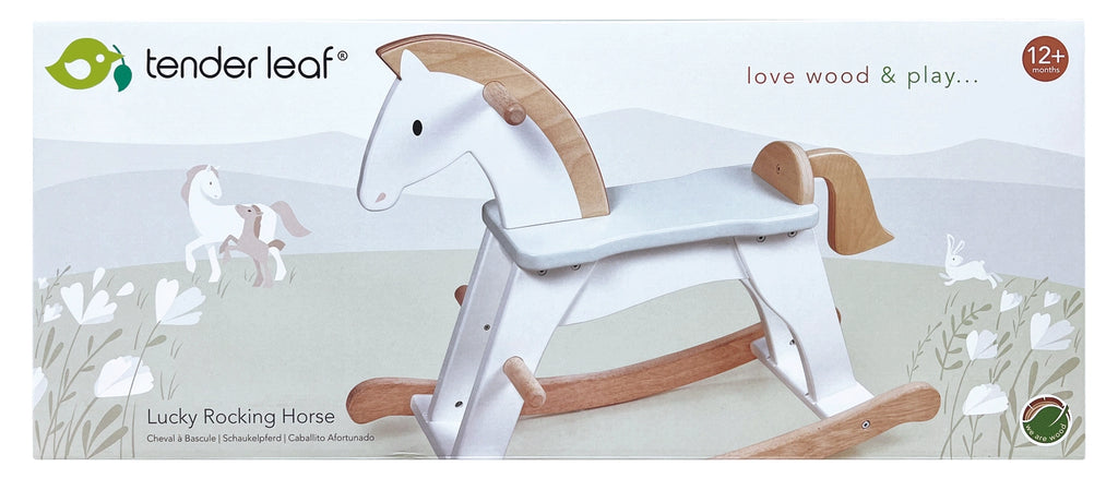 A wooden rocking horse for toddlers to enjoy, a traditional toy with a contemporary twist. A premium rocking horse inspired by the classics. A traditional and essential toy for the nursery or playroom. Simple and chic, painted in white with details in natural wood.